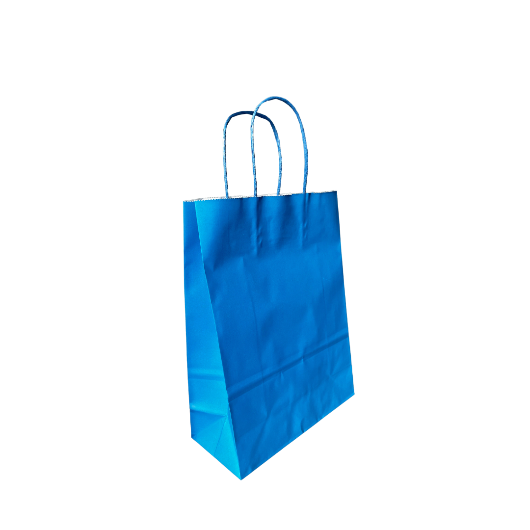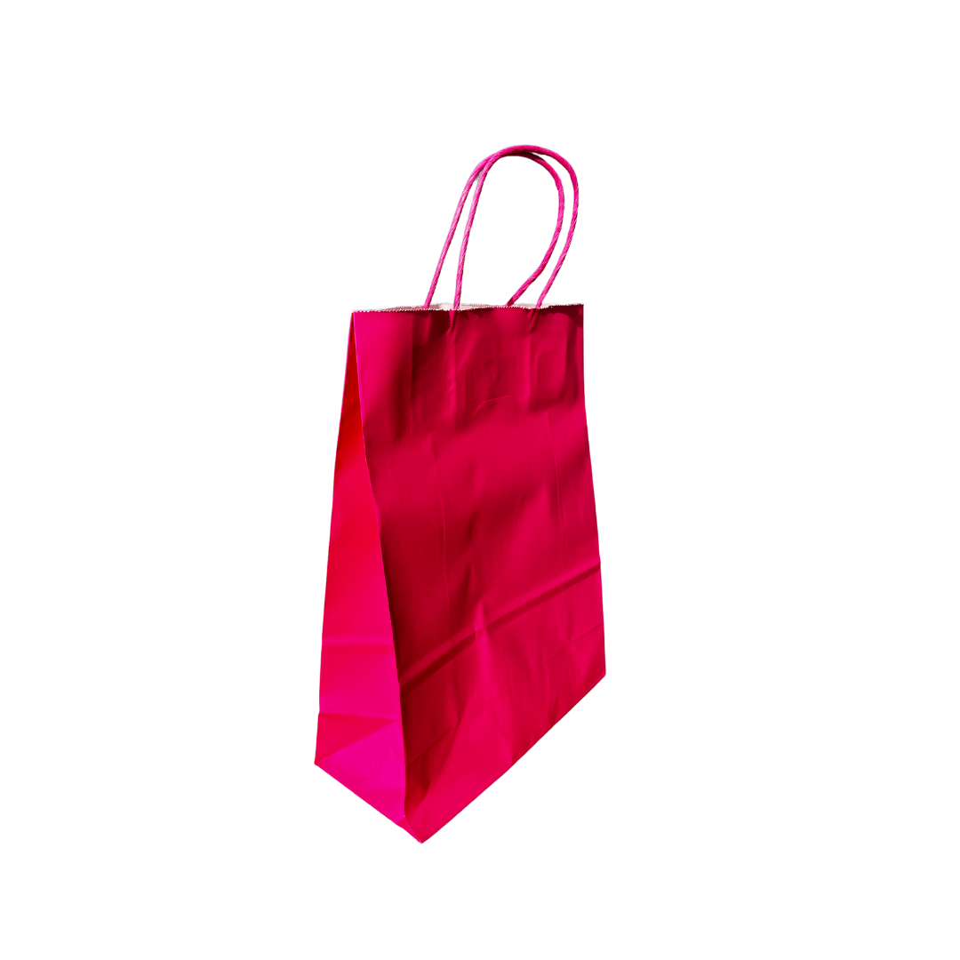 Bolsa de papel kraft FUCSIA, ROJA O AZUL con manilla.
